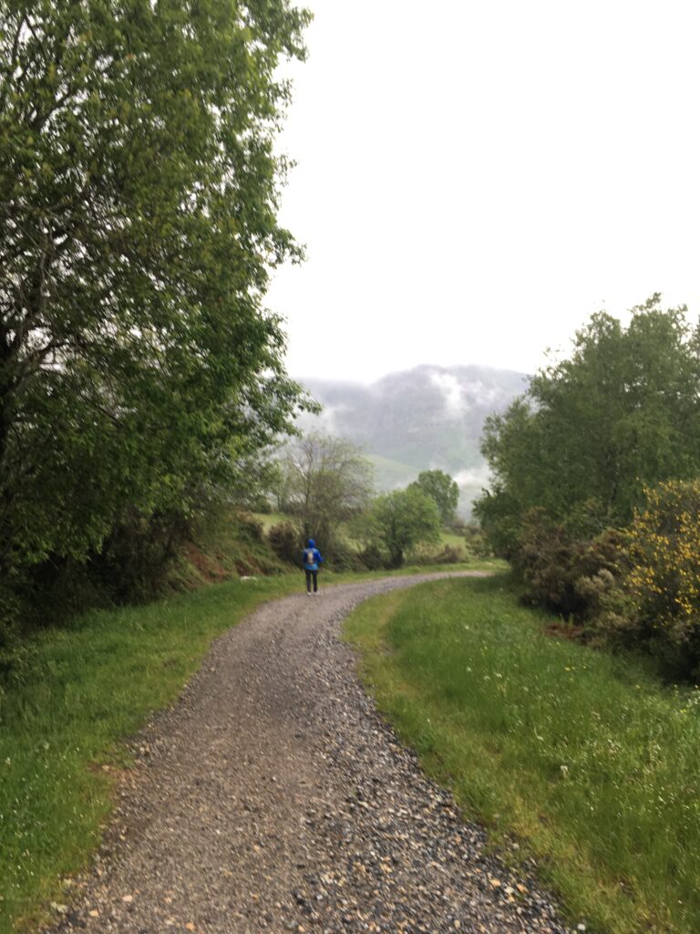 Ostatnią noc spędziłyśmy w wypasionym pensjonacie. Łóżka były tak wygodne, że ledwo wstałyśmy o 6:30, zwłaszcza, że za oknem było mgliście i deszczowo. Ale przecież Camino wzywa! Wypiłyśmy więc pyszną kawę, zjadłyśmy tartę de Santiago i ruszyłyśmy w drogę. 10 km w dół do Tricasteli szeroką, zadrzewioną ścieżką.
